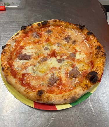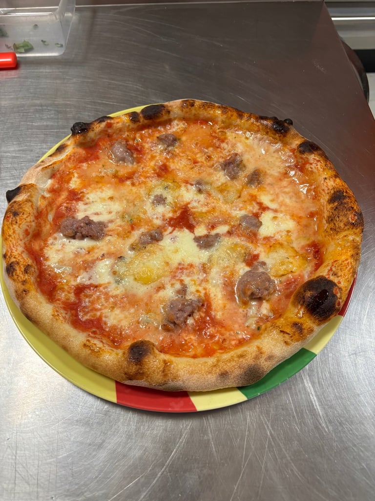 Pomodoro, mozzarella, gorgonzola, salsiccia