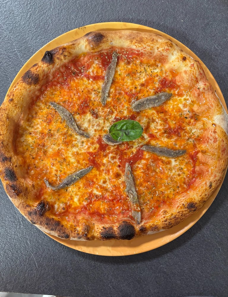 Pomodoro, mozzarella, acciughe, origano